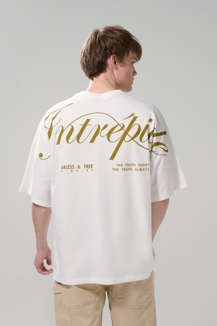 Camiseta unicolor oversize manga corta con textos