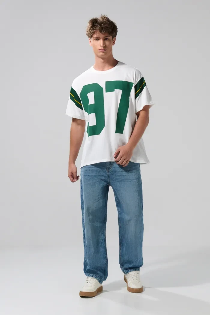 Camiseta cuello redondo oversize crema con arte college